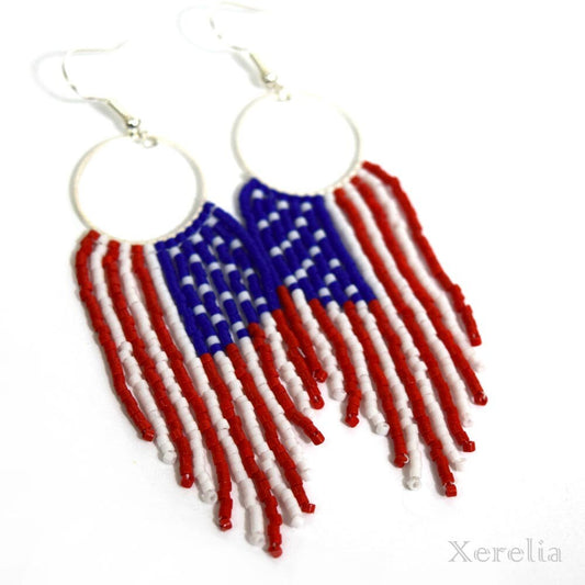 American Flag Fringe Hoop Earrings