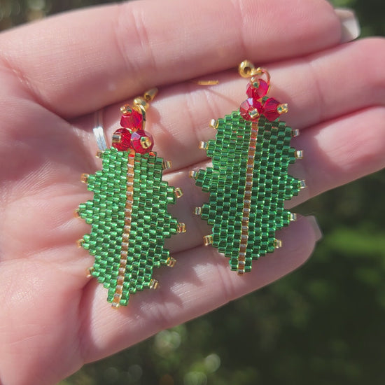These dangly holly leaf earrings give the feeling of a festive holiday decoration. Gives you those cheerful holiday vibes.